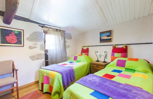 Inside, the farmhouse is equipped with indoor heating, a welcoming living and dining area, and a fully fitted kitchen for simple home-cooked meals. The bedroom and bathroom provide all you need for a restful stay, while on-site parking ensures convenience throughout your visit. With Santiago de Compostela airport just 110 km away, this countryside escape combines ease of access with the calm of rural Spain.