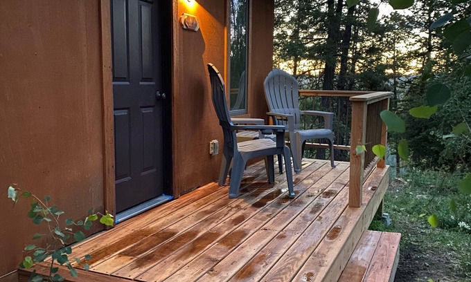 Situated amongst aspens and pines, and just 40 minutes from Telluride's festivals, The BunkHouse at Piney Woods is fully equipped for those who appreciate simplicity in a rustic setting. Complete with bedroom, kitchenette and bath, this cozy space is kept warm by wood stove and cool by the mountain breeze.