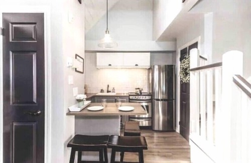 The kitchen has been fully restored for convenience in the aesthetics, including kurieg with cups and everything needed to prepare a nice meal or take advantage of the many wonderful restaurants within walking distance. Enjoy the seasonal resort pool, year-round hot tub, tennis court, ski-in/ski-out access to BlueMountain and free village shuttle