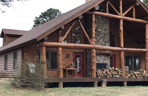 This beautiful rustic Log Home is nestled in the pines on a 300 acre working ranch. If rest and relaxation are what you need, kick back on the front porch and listen to the wind whisper through the Pines. If you are up for adventure, the Illinois river is a very short drive (approx 10 mi). Rafting, canoeing, fishing, and swimming!! You can also find hiking trails at the Sparrow Hawk Primitive Area that is 15 miles from the Cabin. Sparrow hawk Mountain offers beautiful scenery and a great place to capture some family photos!!Also, we are located about 30-45 minute drive from 3 lakes. Lake Tenkiller, Lake Hudson, and Ft Gibson Lake. You can travel just a little bit further and enjoy Grand Lake.