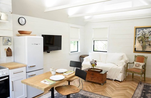 Welcome to our Rustic Modern Cottage Retreat in the heart of Troy, Idaho. This thoughtfully remodeled studio home offers an inviting atmosphere, flooded with natural light. Relax and unwind in the comfort of a luxurious king-size bed. Enjoy an open and spacious feel under vaulted ceilings, with salvaged herringbone wood floors to add a touch of rustic charm. Beautiful tile work in the bathroom with all new fixtures. Perfect for couples or solo travelers seeking a peaceful getaway.
