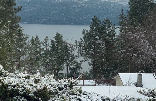Rustic Panoramic Okanagan Lake View Walkout Suite, Sleeps 7 & Pet friendly is located in Westshore Estates. Rustic Panoramic Okanagan Lake View Walkout Suite, Sleeps 7 & Pet friendly provides accommodation, featuring Laundry, Parking, View, among other amenities. This House features Laundry, Parking, View, to make your stay a comfortable one.