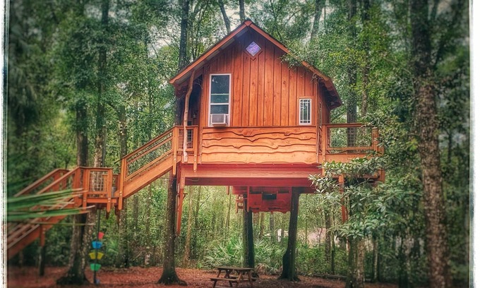 Rustic Treehouse and Cabin Retreat Near the Suwannee River is located in Old Town. Rustic Treehouse and Cabin Retreat Near the Suwannee River provides accommodation, featuring Air Conditioner, Pet Friendly, TV, among other amenities. This Cabin features Air Conditioner, Pet Friendly, TV, to make your stay a comfortable one.