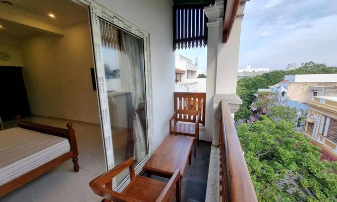 Comfortable Accommodations: RVS Chalet in Puducherry offers a homestay experience with family rooms and private bathrooms. Each room features air-conditioning, a balcony, and a TV.