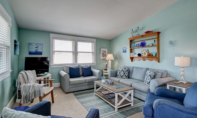 Start and end your days on the large front porch where you can rock while watching your family come back from the beach on the access directly across the street. Check out the sail boats on the sound from the top of the stairs. Within very close walking distance to the Oceanic, South End Surf Shop and SUNdaz café and just blocks from the very end of the island, this location is a vacation retreat come true. Make memories to last all year!