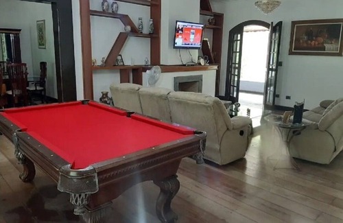 Located in Monteiro Lobato, this 3-bedroom, 2-bathroom cottage lets you experience it all. Fans of nature and the outdoors will love being 22 minutes by car from Vale do Paraíba and 63 minutes from Amantikir Park. If you'd like to explore the area, you can make the 54-minute drive to Jardim dos Pinhais Ecco Parque or the 49-minute drive to SESC.