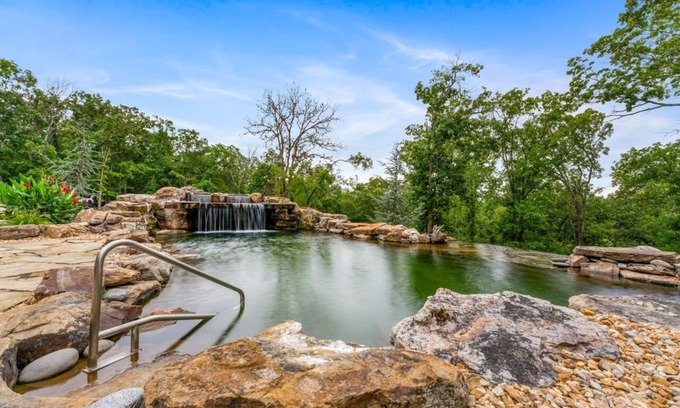 All units have access to our beautiful, naturally filtered Swimming Pond! The pond is 100% natural, so there will be fish, (Koi & Goldfish) bugs, tadpoles, frogs, etc. Please do not tamper with any harmless wildlife in the pond as their presence helps the pond’s ecosystem and helps keep it clean! You can enjoy the view of the beautiful waterfalls year round, however the pond is not heated.