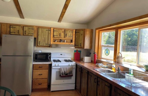 Sadie's Place is a cozy, comfortable two bedroom home located in the heart of Story on a secluded corner of paradise. The house is well equipped to provide a worry free stay. It is a short walk to the local store, library and post office. On the property there is a private walking trail (walking, snow shoeing or cross country skiing), three holes of rustic golf, a beautiful mountain stream and an abundance of opportunities for wild life watching. For relaxation, there is no place better.