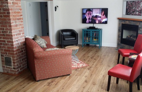 Only a two minute walk from the water's edge finds you in this comfortable two bedroom destination. It has heritage features such as exposed brick while at the same time utilizes modern technology to make the techy person feel right at home. Three large flat screen 1080 tvs with access to hundreds of HD channels and unlimited high speed wifi invite those who like to stay in touch with the world, family and business while away from home.