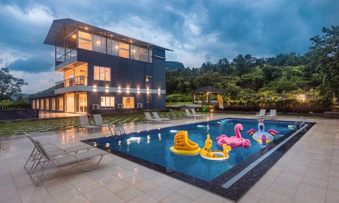 SaffronStays Sundowner by the Lake, Karjat - party-perfect pool villa with rain dance and cricket turf | Villa in Karjat