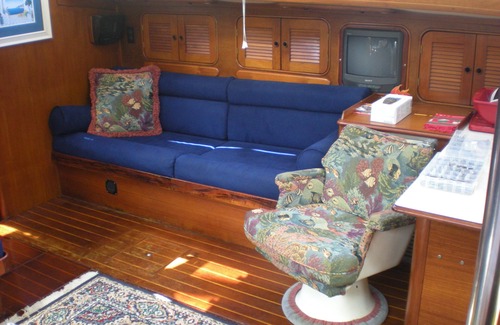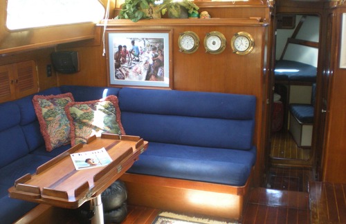 Two cabins, each with its own head (bathroom), accommodate 2 couples with two additional bunks available in the salon. Each stateroom is made-up with bed linens, pillows, bath towels, and beach towels. A change of linens and bath towels is provided mid-week. We also supply soap, shampoo and sunscreen.