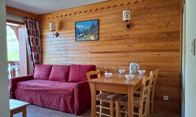 This wood-paneled 33m² apartment welcomes you for a sporty vacation at the foot of the slopes and the Marquis chairlift.