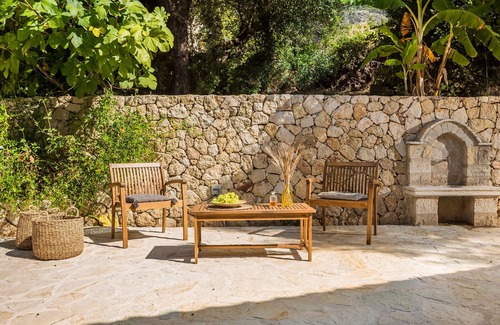 A comfortable stone staircase leads from the main terrace to the fitness area, the vegetable garden, the orchard and a lounge terrace ("Portokali") equipped with a table and armchairs.