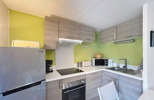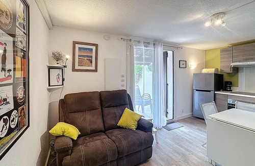 Close to the village center, Résidence des Launes offers a house for 4 people. On the ground floor, you'll find a large courtyard with a washing machine and dishwasher, a living/dining room with a fully equipped kitchen (hob, fridge-freezer, extractor hood, coffee maker, and a flat-pan grill), a sofa, air conditioning, a TV, and a toilet. Upstairs, there are two bedrooms with double beds and a bathroom.