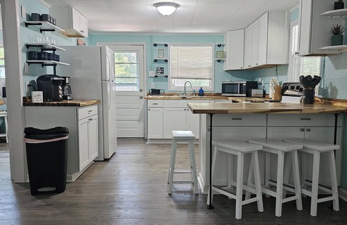 Escape to our charming and newly renovated dog-friendly vacation rental! Nestled on a spacious double lot, this cozy two-bedroom, one-bath home offers a perfect retreat for those seeking comfort and convenience. The property boasts a fenced backyard, ideal for your furry companions to play freely, as well as a long gravel driveway, perfect for parking your boat.