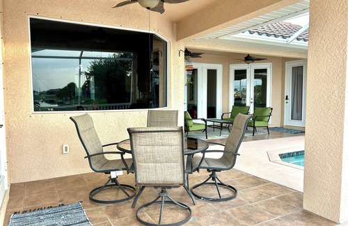 Located in Cape Coral, enjoy what this 4-bedroom house has to offer. With 1 king bed and 3 queen beds, guests can relax in private comfort. The soothing jetted bathtub or refreshing shower make for the perfect end to a sun filled day. This amazing property also features a pool, wonderful lake views and lake access. Experience what Cape Coral has to offer with a stay at our house. So many things to do within walking and a short drive distance.