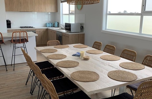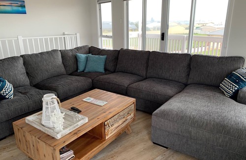 Salty Shores is a modern, two storey home with four bedrooms, two and a half bathrooms, two living areas and sleeps approximately 12 people.