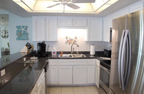 The condo has two other spacious bedrooms and a second full bathroom convenient to both. One bedroom offers brand new queen size bed, 55” flat screen TV with view of the Intracoastal Waterway which is perfect to enjoy the sunset with a quick step out of the front door. The other bedroom has two twin beds and a 55” flat screen TV, just perfect for the kids.