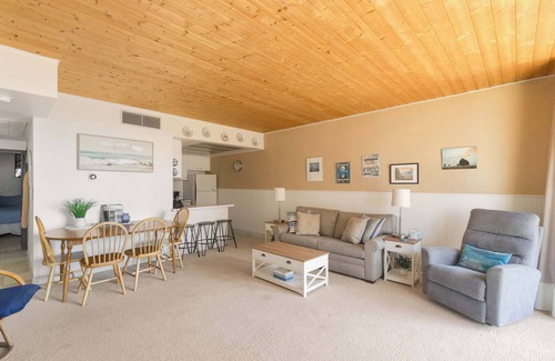 Welcome to your serene 1BR coastal retreat on the 2nd floor. This cozy condo offers partial ocean views and easy beach access, perfect for unwinding. The living area features a fireplace, while the private balcony invites you to savor the seaside breeze. Explore nearby shops and dining, or simply relax and rejuvenate. Book your seaside escape today!