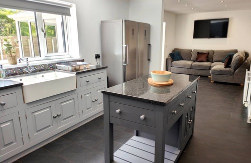 Amenities: Gas central heating. Range cooker with seven-ring gas hob, microwave, fridge, freezer, washing machine, tumble dryer, dishwasher. Fuel and power inc. in rent. Bed linen and towels inc. in rent. Off-road parking for 6 cars. Garden with patio, decking, outdoor furniture and 8-seater hot tub. Two well-behaved pets welcome. Additional dogs allowed on request at £30 per pet. Sorry, no smoking. No stag or hen parties permitted. Shop 0.6 miles, pub 0.3 miles. Note: Check-in from 4:30pm, check out at 10am. Note: Please be respectful of neighbouring properties due to residential location of the property. Please note there is a £500.00 good housekeeping bond on this property. Please note: bookings over the Christmas and New Year period must be a minimum of 4 nights and the owner cannot accommodate check in on Christmas Eve, Christmas Day, New Year’s Eve or New Year’s Day. No Stag, Hen or Similar Party Bookings.