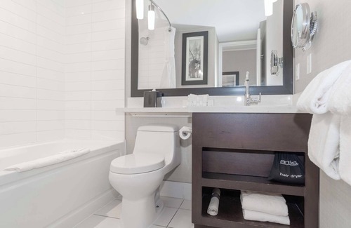 Sandman Signature Langley Hotel offers 196 air-conditioned accommodations with coffee/tea makers and designer toiletries. 32-inch flat-screen televisions come with cable channels. Bathrooms include shower/tub combinations, complimentary toiletries, and hair dryers.