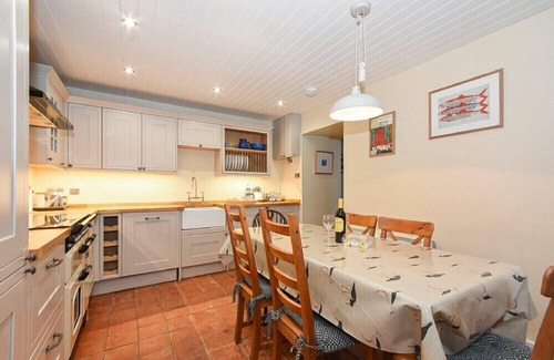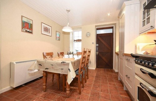 Amenities: Electric storage heating with woodburning stove. Electric oven, grill and hob, microwave, fridge/freezer, Nespresso Vertuo (several complimentary pods provided), washing machine, dishwasher. TV/DVD player, music system, WiFi. Fuel and power inc. in rent. Bed linen and towels inc. in rent. Travel cot and highchair available. Private parking for 2 cars. Two well-behaved dogs welcome. Sorry, no smoking. Shop 2.7 miles, pub 0.1 miles, beach 0.1 miles. Note: This property is suitable for a maximum of four adults.