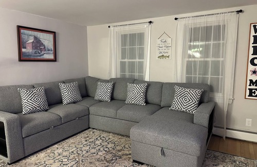 Recently renovated house in Sandwich. Walking Distance to restaurants, stores and town beaches. Sleeps 7. Includes one bedroom with queen bed, one bedroom with 3 twin beds and living room with fold out full couch. Includes dining room, laundry and large yard with stone patio.