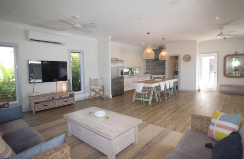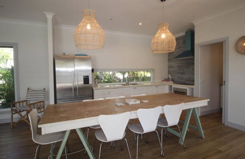 Exceptional style and features to accommodate families or groups of up to 11 guests in this gorgeous fully airconditioned pavilion home with stunning pool and wide covered decks. Spacious living room with large kitchen table, butlers pantry, dishwasher and double door fridge.