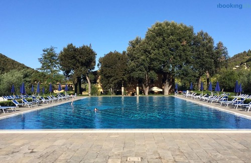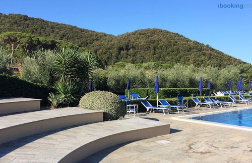 The residence extends over a large area of 3 hectares, with the possibility of pleasant walks among olive trees, holm oaks and oleanders. Made up of apartments of various sizes, harmoniously inserted within the Mediterranean scrub, it enjoys the suggestive view of the Volterraio Castle. In the center of the park, we find a swimming pool for adults, one for children, Spa, sauna, showers, changing rooms, tennis courts, bar, in addition to the restaurant "Il Giardino degli Aranci", surrounded by lemons, pomegranates and oranges.