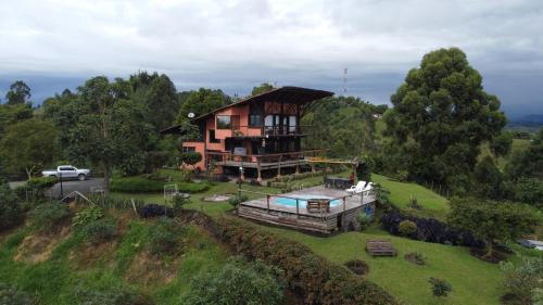 Offering a garden, Santa Elena de la Colina features accommodations in Filandia. This property offers access to a balcony, free private parking, and free Wifi. The vacation home provides a pool with pool views, hot tub, and full-day security. Providing a terrace and mountain views, the spacious vacation home includes 3 bedrooms, 2 living rooms, cable flat-screen TV, an equipped kitchen, and 3 bathrooms with a hot tub and a bath. Guests can take in the views of the garden from the patio, which also has outdoor furniture. The vacation home offers bed linen, towels, and daily room service. For those times when you'd rather not eat out, you can cook on the barbecue. For guests with children, the vacation home offers kids pool and an indoor play area. The vacation home has a picnic area where you can spend the day outdoors. Ukumari Zoo is 23 miles from Santa Elena de la Colina, while Panaca is 14 miles away. Matecaña International Airport is 21 miles from the property.