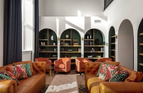 Lily's Parlor is similar to a hotel lobby: a place to gather and feel welcomed. Bookcases are filled with a variety of good reads, classic games or you can write your own story on the Parlor typewriter. Features include a microwave and filtered water station for guest use.