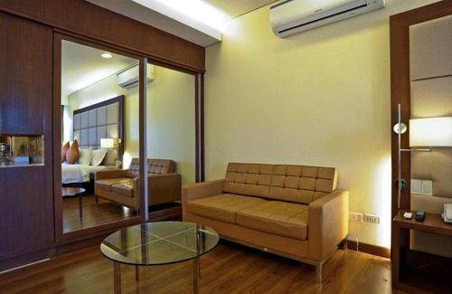SanTomas Suites offers 40 air-conditioned accommodations with safes and complimentary bottled water. Refrigerators and coffee/tea makers are provided. Bathrooms include shower/tub combinations, slippers, complimentary toiletries, and hair dryers.