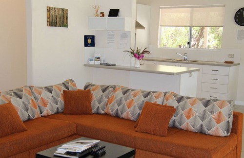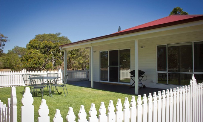 Relax in tranquility at Sapphire Chalets, where you can take in views of a picturesque farm and unwind amongst bushland. These modern, two bedroom chalets are only a 5-minute drive from the seaside town of Augusta and provide many home comforts for a relaxing stay. They each feature a private outdoor area complete with furniture, a barbecue and an enclosed lawn. The air conditioned, self-contained accommodation offers a well equipped kitchen, dining room and spacious living area. Optional bed configurations can be made available in the main bedroom on request with converting the king bed into two singles. The second bedroom provides a queen bed. Free covered parking is available, with additional space for boat and trailer parking.