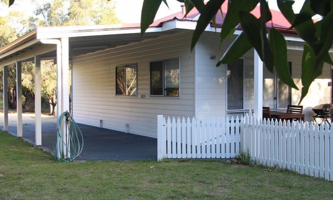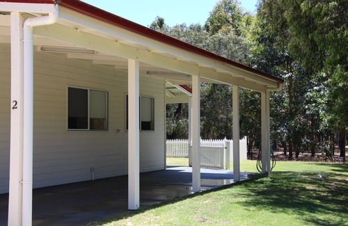 Relax in tranquility at Sapphire Chalets, where you can take in views of a picturesque farm and unwind amongst bushland. These modern, two bedroom chalets are only a 5-minute drive from the seaside town of Augusta and provide many home comforts for a relaxing stay. They each feature a private outdoor area complete with furniture, a barbecue and an enclosed lawn. The air conditioned, self-contained accommodation offers a well equipped kitchen, dining room and spacious living area. Optional bed configurations can be made available in the main bedroom on request with converting the king bed into two singles. The second bedroom provides a queen bed. Free covered parking is available, with additional space for boat and trailer parking.