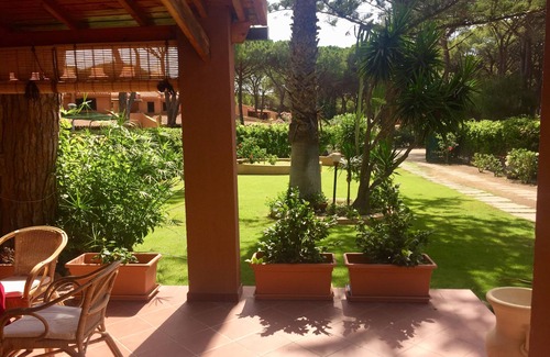 Located in the south of Sardinia, a few kilometers from Pula and Chia, next to the Forte Village Resort at Km 39.90 in the condominium "La Pineta", the quadrisque head-of-the-villa, surrounded by pine trees. Inside there is a large living / dining room with sofas, color TV, an equipped kitchen with fridge and freezer and oven. Bathroom with shower. Double bedroom, a bedroom with two bunk beds and another double bedroom. Outside the house there is a large porch where you can organize pleasant breakfasts, lunches and dinners. The house is equipped with an external barbecue, possibility of hot outdoor shower. Garden around the house and car park. The beach can be reached on foot along the private avenue (about 200 m.). At 100m a market equipped with everything, also open on Sunday morning. Along the coast dozens of restaurants, pizzerias, various equestrian centers, discos, pubs etc. We rent weekly and monthly. As for the price, direct contact with the owner is preferred.