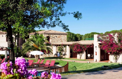 Nestled in lush greenery near Campulongu Beach, the residences of Villasimius offer a peaceful escape on Sardinia’s southeastern coast. Just 500 meters from the sea and a short walk to the town center, these terraced homes are arranged around a central square and a stunning 270 m² swimming pool with a children’s area and snack bar, perfect for families and couples alike. Each apartment features a furnished veranda or balcony, a modern kitchenette, LCD TV, air conditioning, and a private bathroom. Ground-floor units offer verandas, while first-floor apartments have balconies, all connected by charming arcades in authentic Sardinian style. Some units are also accessible for guests with reduced mobility. Surrounded by pine and juniper woodlands, the complex is close to an 18-hole golf course, equestrian facilities, and scenic trails overlooking Capo Carbonara. Free Wi-Fi is available near the bar, and on-site parking is included. With Campulongu Beach just a short stroll away, this residence blends comfort, nature, and Sardinian charm for an unforgettable holiday.
