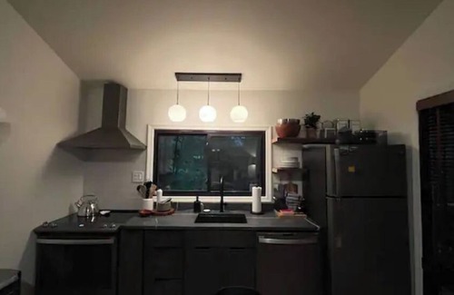 A pocket 576 sq ft of tranquility, this 1968 cabin has been eloquently brought back to life for you to enjoy. The home is nestled in a wooded and peaceful neighborhood, surrounded by nature. One can hear the footsteps of the deer or the chirping of birds while sipping their morning coffee in the beautiful outdoor spaces.