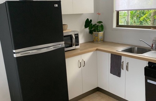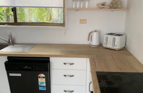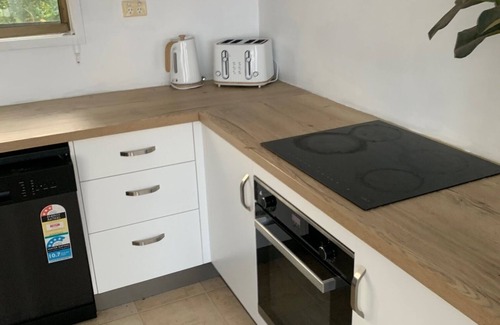 This is a small, clean, and comfortable 2 bedroom cottage. It is less than a five-minute walk from the beach and is situated at the back of a pizzeria. All mod cons: well-equipped kitchen, dishwasher, oven, TV in lounge room, AND master bedroom. Free wi-fi, etc. Airconditioning throughout. Tea, coffee, and breakfast cereals are provided. Or walk to the front of the property in the evening for a pizza and a cold beer. The fishing is fantastic, and the crabs are plentiful. Two crab pots on site for the enthusiasts. HOW GOOD IS THAT?