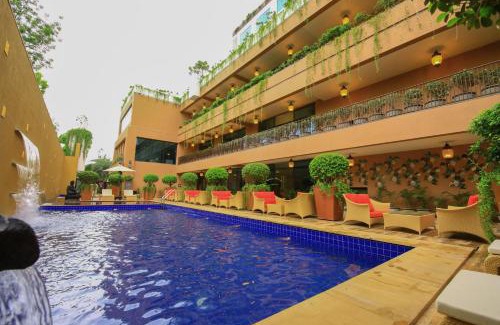 Located in Rajkot and with Rajkot Train Station reachable within 4.6 miles, Sayaji Rajkot has concierge services, non-smoking rooms, an outdoor swimming pool, free WiFi throughout the property and a fitness center. This 5-star hotel offers room service and a 24-hour front desk. The property provides airport transportation, while a car rental service is also available. The hotel will provide guests with air-conditioned rooms with a closet, an electric tea pot, a minibar, a safety deposit box, a flat-screen TV and a private bathroom with a bidet. The breakfast offers buffet, continental or Asian options. At Sayaji Rajkot you'll find a restaurant serving Indian cuisine. A vegetarian option can also be requested. Saurashtra Cricket Association Stadium is 10 miles from the accommodation. Rajkot International Airport is 21 miles from the property.