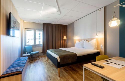 Located in Kista Science Park north of Stockholm, Scandic Kista is 1312 feet from Kista Metro Station. It offers free WiFi, paid parking (subject to availability) and rooms with cable TV and a private bathroom with shower. Our bar is open every day of the week, where you can also order various dishes such as tapas, pinsa (A variation of pizza) , etc. A buffet breakfast is served every morning. Leisure facilities include a relax area with a sauna and a gym. Scandic Kista has a convenient 24-hour reception allowing guests to come and go whenever they want. The shops, restaurants and cinemas in Kista Galleria Shopping Center are only 492 feet from the hotel. Stockholm city center is a 18-minute metro ride away.