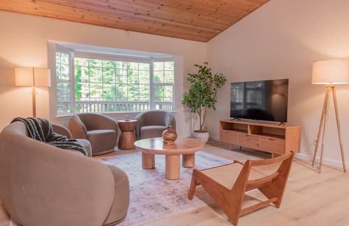 Retreat into the scenic mountains and stay in this beautifully designed modern home filled with natural light. Our home has a large fully finished and fenced-in backyard with a hot tub and a large deck. Just minutes away from Lake Jenkinson, Sly Park, hiking trails, Apple Hill, and local wineries, and just 45 minutes away from South Lake Tahoe!
