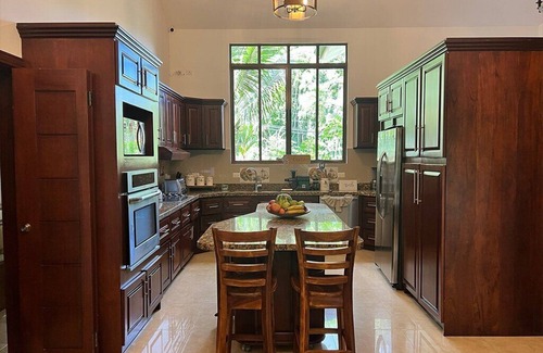 Prepare delightful meals in our fully equipped luxury kitchen or outdoor grill while savoring the paradise around you. With five bedrooms in the main house, each boasting air conditioning and a private bathroom, restful nights are ensured. Blackout curtains guarantee uninterrupted sleep, while the house is filled with natural light and fresh air.