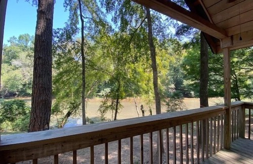 Check out these scenic views from this riverside cabin on the banks of the Ocmulgee River. From your front porch you can see Zellner Island and Juliette Dam. This one-bedroom cabin has an authentic, primitive feel but features all the niceties of home. The house features a studio set-up, a comfortable queen bed, and a simple kitchen with a microwave and refrigerator. The home also contains a comfortable bathroom, features heat and air, and comes with towels and linens.