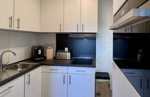 Prepare a home-cooked meal in the kitchen, complete with an oven, a stovetop, and a refrigerator, as well as a coffee maker, an electric kettle, and a microwave. Bathroom amenities include a hair dryer, towels, and toilet paper. And because there's a washing machine, you can go a bit lighter on your packing. Other amenities include a living room, bed sheets, housekeeping, and heating.