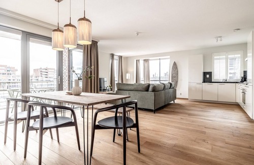 Modern Comfort by the Sea This elegant seaside apartment in Scheveningen offers panoramic views of the harbor and North Sea, perfect for a relaxing coastal escape. With stylish interiors, a sunlit living area, and a private balcony, it's ideal for enjoying slow mornings or evening sunsets. Guests can unwind in the modern lounge, cook in the fully equipped kitchen, or take advantage of the secure private garage and in-unit laundry. The building’s elevator offers easy access, making the stay convenient and comfortable for all guests. Explore Scheveningen & Beyond Step outside and walk to the golden sands of Zuiderstrand, or take a leisurely stroll along the lively boulevard and the iconic Scheveningen Pier. Nearby attractions include the fascinating Sea Life aquarium, the interactive science museum Museon, and the miniature city of Madurodam. Culture lovers can explore the Peace Palace or visit the historic Binnenhof in The Hague, just a short tram or bike ride away. The neighborhood offers a perfect mix of relaxation and urban adventure. Dining & Local Delights Scheveningen Harbor is lined with fantastic restaurants like Catch by Simonis and Encore by Simonis, known for fresh seafood and harbor views. Try a sunset drink at The Harbour Club or enjoy cozy cafés tucked along the pier and beachside. From fine dining to casual bites, there's something to satisfy every craving—many just steps from your front door.