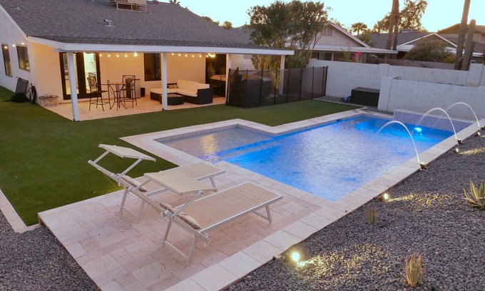 This private and quiet, family friendly 3 bedroom, 2 bathroom house is cozy and comfortable. Prepare to relax in this updated vacation home that boasts all the amenities you desire! All 5 mattresses are comfortable, memory foam. Quiet Scottsdale neighborhood close to Kierland, Waste Management Phoenix Open, Barrett Jackson, West World, Mayo Clinic and awesome shopping and dining. Private backyard with covered patio, grill, hot tub, outdoor games and optional heated pool (*fee, see below). This home is a wonderful place to get away from it all and create lasting memories with your family and friends. This home is intended for small groups and families to come and relax and enjoy time together. This house is not for parties, loud groups of people, or events.