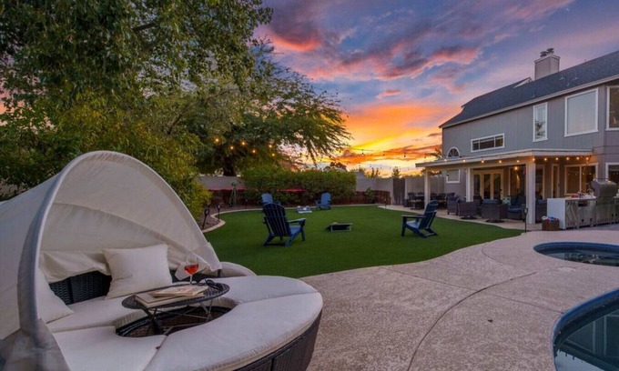 Our lovely 4 bedroom (5 bed + queen inflatable), 2.5 bath, with heated pool and spa, laundry, luxury backyard with BBQ Island fire pit, outdoor dining table, 120inch laser projection TV is all yours for the perfect Arizona getaway