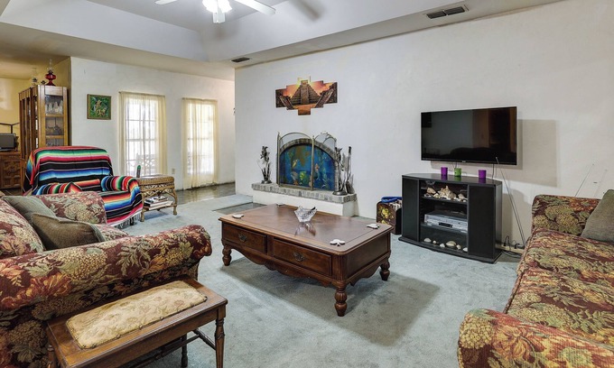 Find a unique hideaway at this 3-bed, 2.5-bath vacation rental on 3 acres of land. If you're up for a drive to the beach, beautiful coastlines like Boca Chica Beach are about 50 miles away, while The Harlingen Arts and Heritage Museum is only 9 miles away. After a day of fun, grill dinner on the porch or cook in the well-equipped kitchenette.