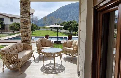 As a family business, we have 3,200 square meters of land with 30 orange trees, 11 lemon trees, 2 tangerine trees, 2 pomegranate trees, 1 oleaster tree, 31 sweetgum trees, 14 olive trees, and one of our two houses, each of 160 square meters, for our valued guests. We have prepared it, the other house is for our use. Additionally, there is a salt system swimming pool on our property, which is for your use only. We are waiting for you in Köyceğiz (Muğla), one of the important centers both geographically and historically. We will be happy to assist you in any matter.