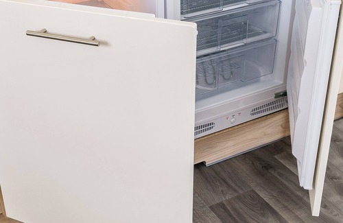 The kitchen has a fridge, a hob, an oven, a kettle, a dishwasher, a freezer and a microwave.